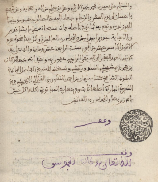 فهرس مخطوطات وكالة الجاموس (مجموعة الشيخ أحمد الخليلي / مكتب الإفتاء) تقع الوكالة في خط طولون بالقاهرة (في "درب الأطفحي" الذي كان يُعرف بـ "زقاق المُغربل"). تأسست في مطلع القرن السابع عشر الميلادي على يد عبد العزيز بن منصور البحّار (التاجر الجربي)، ثم جدد وقفها التاجر أحمد بن سعيد الجملي بموجب حجة وقفية مؤرخة في ٢٨ ذي الحجة ١١٥٢ هـ (٢٧ مارس ١٧٤٠ م). خصص الوقف لسكنى "السادة المغاربة الطلبة الحفظة لكتاب الله" والإنفاق عليهم نظير تفرغهم للعلم وتلاوة القرآن. تحولت الوكالة إلى مدرسة ودار نسخ نشطة. تكشف حواشي المخطوطات وخواتيمها عن أسماء نساخ بارزين عملوا في الوكالة، مثل: عمرو بن رمضان التلاتي (توفي ١١٨٧ هـ)، أفراد من عائلة الباروني (مثل محمد بن يوسف الباروني) وعائلة الشماخي (مثل سعيد بن قاسم الشماخي). تتنوع المخطوطات بين الفقه والعقيدة والتاريخ، وتحمل تملكات ووقفيات (مثل: "وقف أحمد الجملي" أو "وقف على طلبة الوكالة")، مما يجعلها وثائق مادية لتاريخ الوقف الإباضي في مصر. الإنقاذ والحفظ بينما كان المبنى المادي للوكالة يتداعى قبل أن يندثر تماماً حوالي عام ١٩٧٢ م، تم حفظ محتويات مكتبتها بفضل تدخل سماحة الشيخ أحمد الخليلي. يرمز هذا الانتقال من القاهرة إلى عُمان إلى الروابط العميقة والمستمرة بين المجتمعات الإباضية في المغرب الكبير (جربة، وادي مزاب، جبل نفوسة) ونظيرتها في عُمان. - فهرس مخطوطات خزانة الراعي