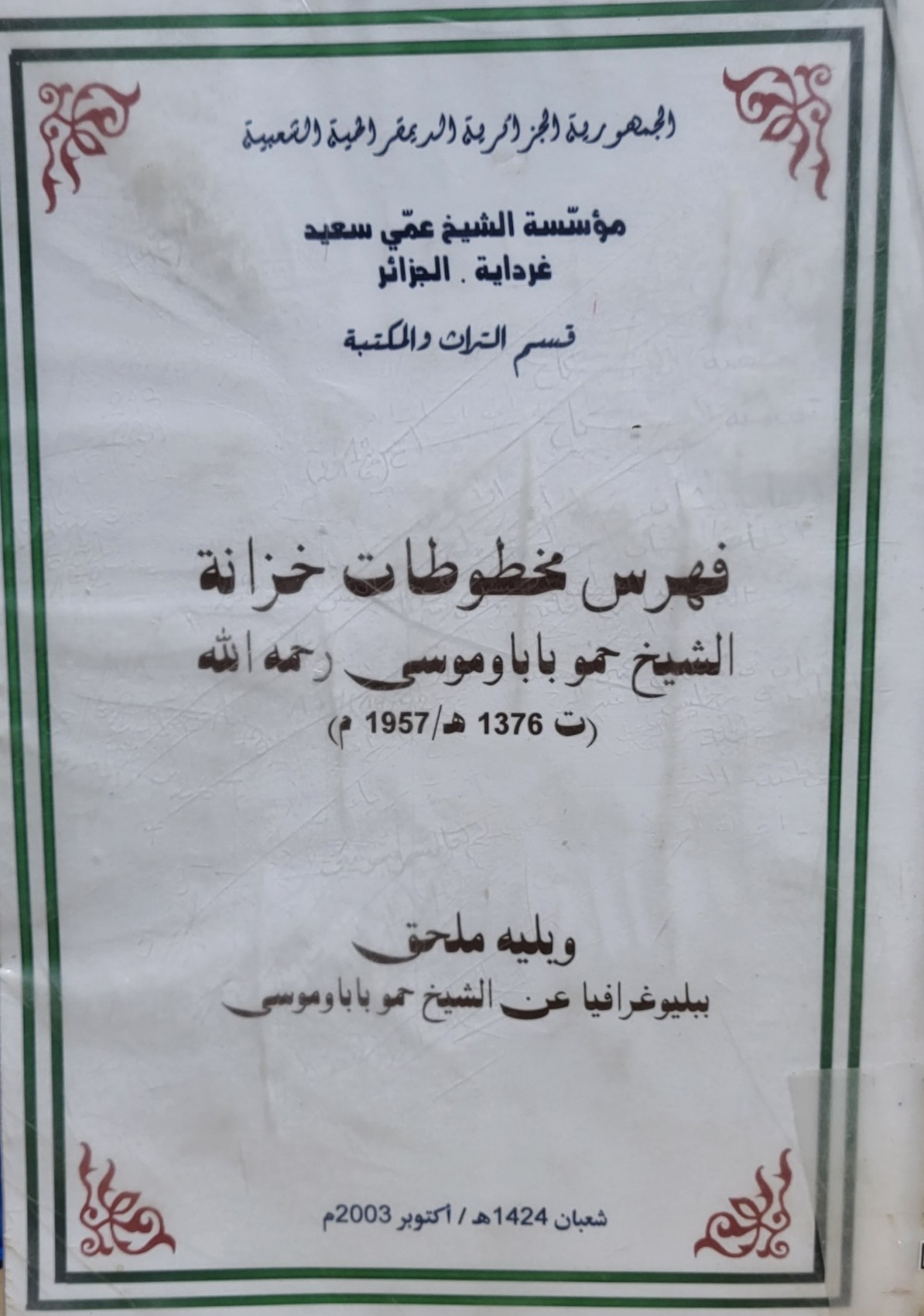 فهرس مخطوطات خزانة الشيخ حمو بن باحمد باباوموسى (ت 1376هـ/1957م) -