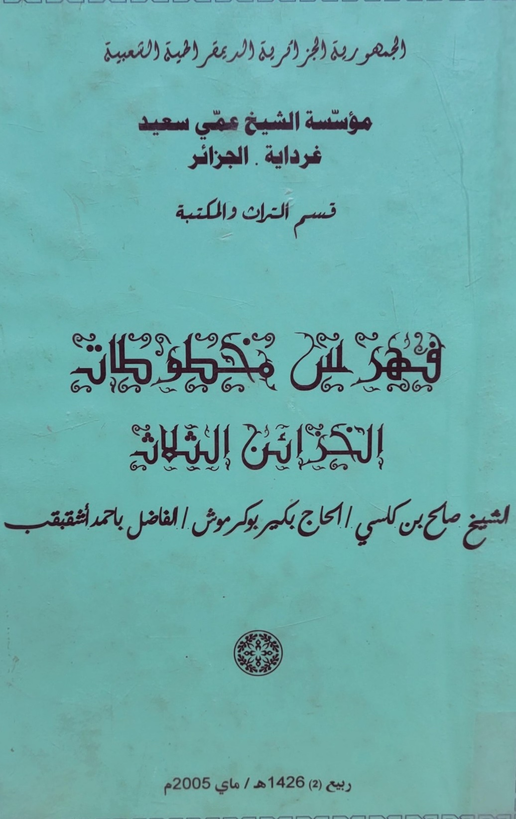 فهرس مخطوطات الخزائن الثلاث: الشيخ صالح بن كاسي، الحاج بكير بوكرموش، الفاضل باحمد اشقبقب -