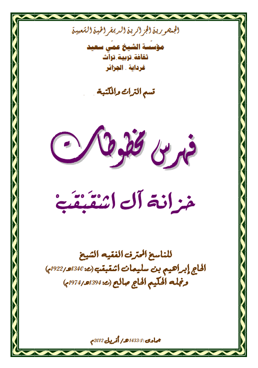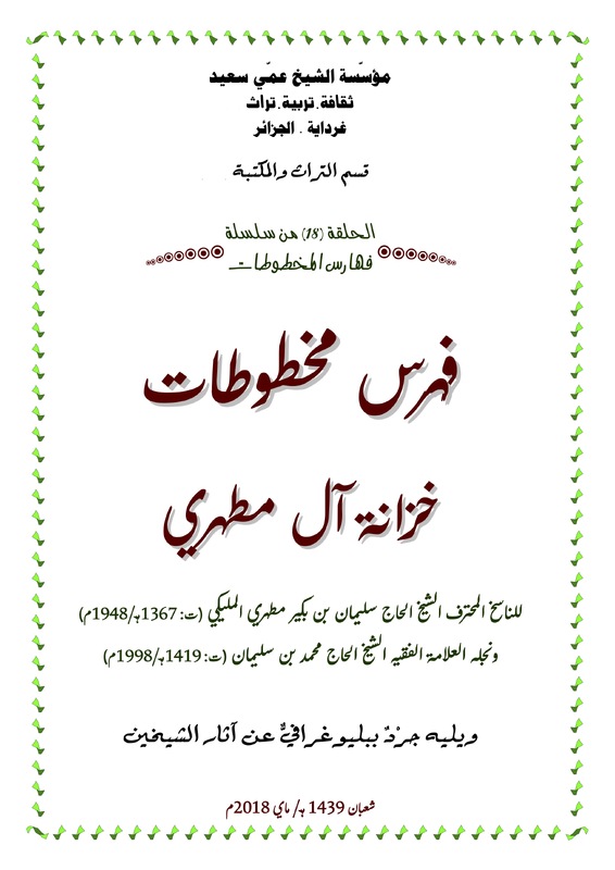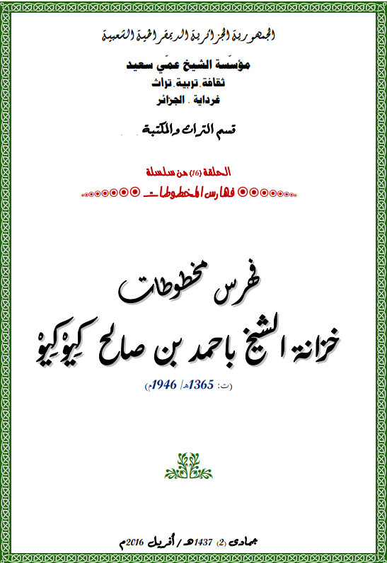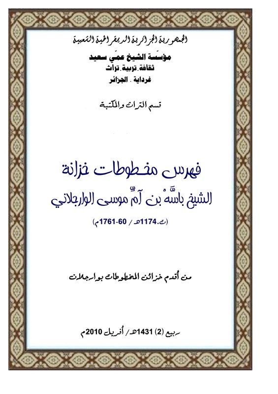 فهرس المخطوطات خزانة الشيخ باسه بن آمّ موسى الوارجلاني (ت.1174هـ/1761م) -