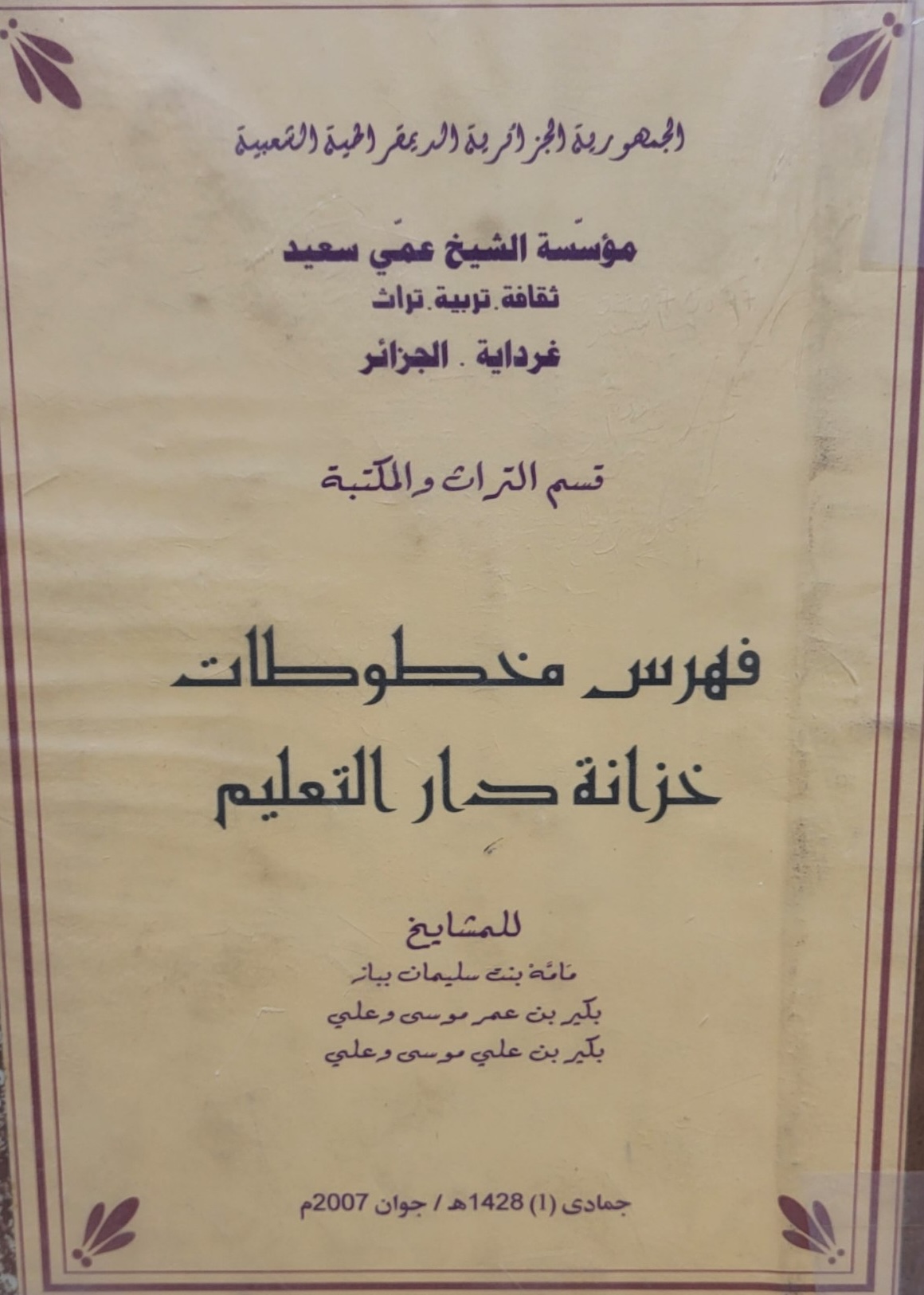 فهرس مخطوطات دار التعليم (غرداية، الجزائر) -